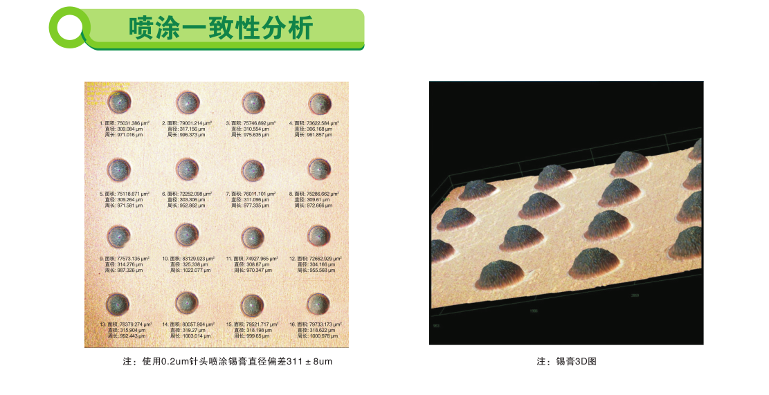 本產(chǎn)品應用在噴涂工藝,具有噴涂工藝窗口寬,出錫量均勻焊點(diǎn)一致性好,錫膏不坍塌成型好等特點(diǎn)。膏體性質(zhì)穩定,滿(mǎn)足長(cháng)時(shí)間噴涂要求,可多次冷藏回溫使用。