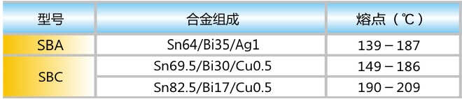 電子工業(yè)無(wú)鉛化,及時(shí)雨焊料及時(shí)推出了系列中溫合金無(wú)鉛焊錫膏,采用新型無(wú)鉛焊料合金SnBi35Ag1/SnBi30Cu0.5/SnBi17Cu0.5/制成。